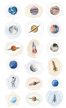 18 db különleges matrica, mely élethűen ábrázolt képeken mutatja be a világűrt és a bolygókat. A matricák különlegességét alakjuk és anyaguk adja.