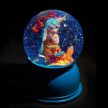 Csillogó havazós, éjszakai fényt árasztó éjjeli lámpa.